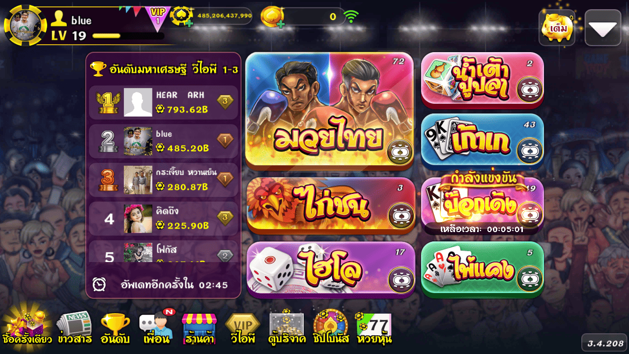 1.เข้าเกม กด น้ำเต้าปูปลา หรือกดสัญลักษณ์ [:::] เพื่อเลือกประเภทห้องการเดิมพัน
